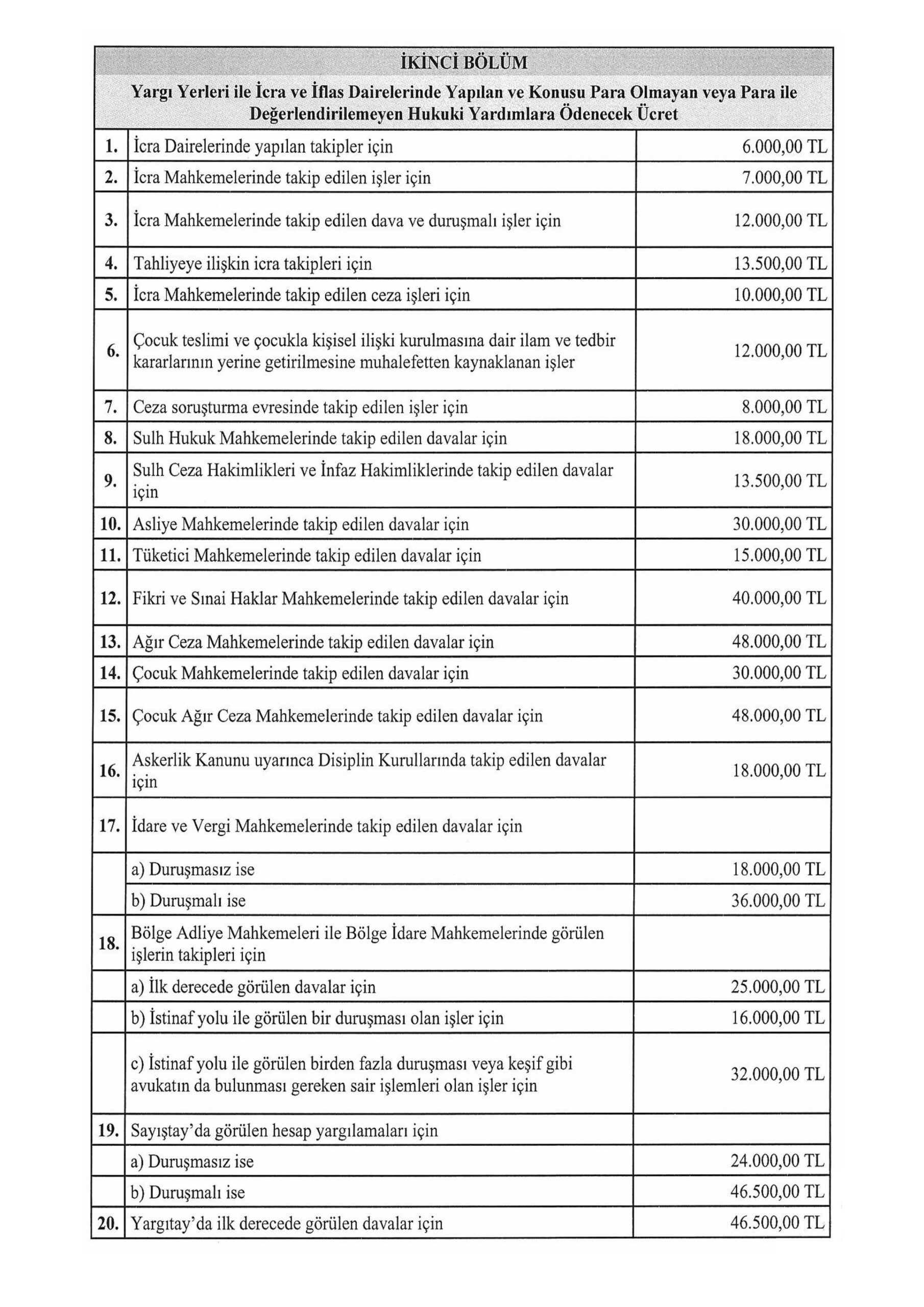 Yukarıda Resmi Gazete linkini paylaşmış olduğumuz ve birkaç örnek ile açıklamış olduğumuz avukatlık ücretleri avukat ile müvekkili arasında belirlenecek en az ücreti ifade etmektedir.